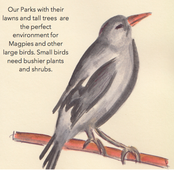 - No small birds present within park that are typically associated with waterways (e.g. Superb Fairy-wren - Malurus cyaneus, Spotted Pardalote - Pardalotus punctatus) due to a lack of protective bushy vegetation.