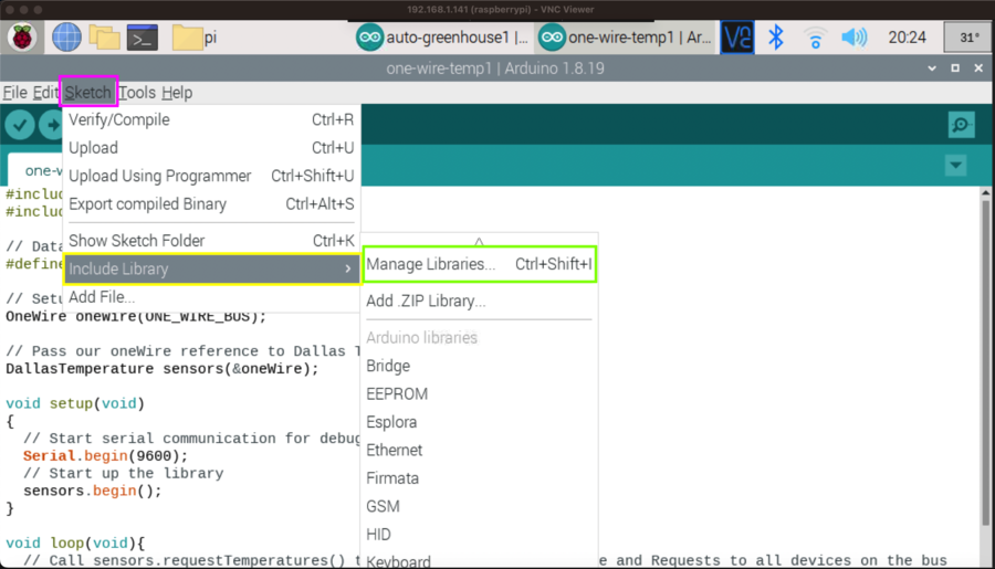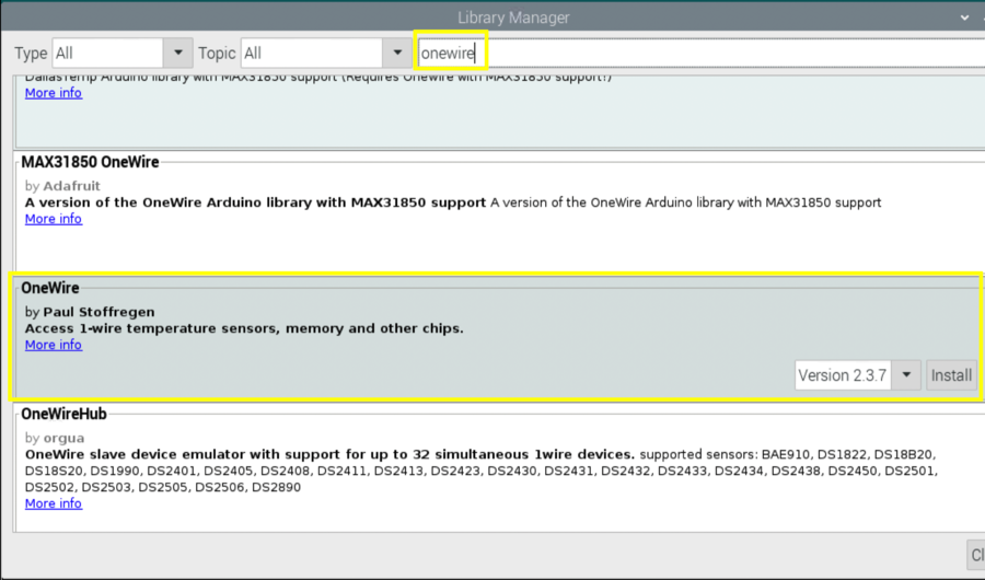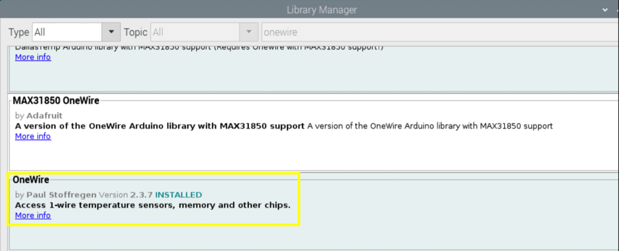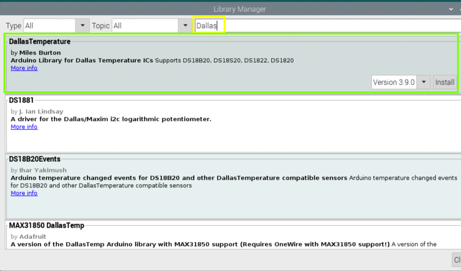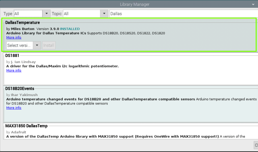 • In this instance version 3.9.0 of the DallasTemperature library was installed.