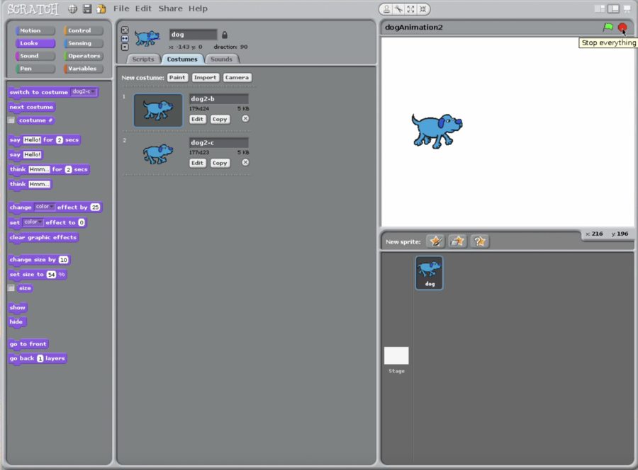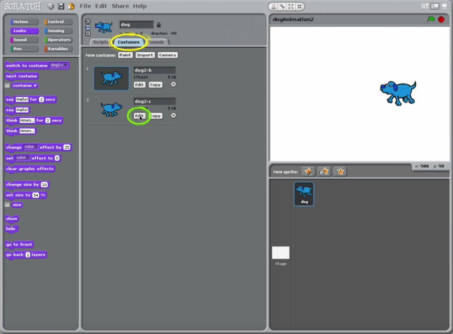 - There should be two dog sprite costumes.