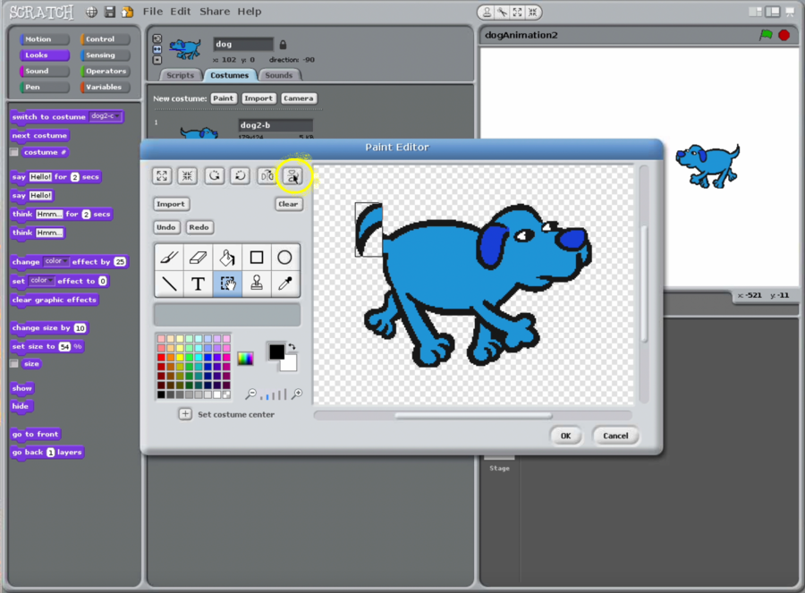 - We will edit one dog sprite so that the tail points down.